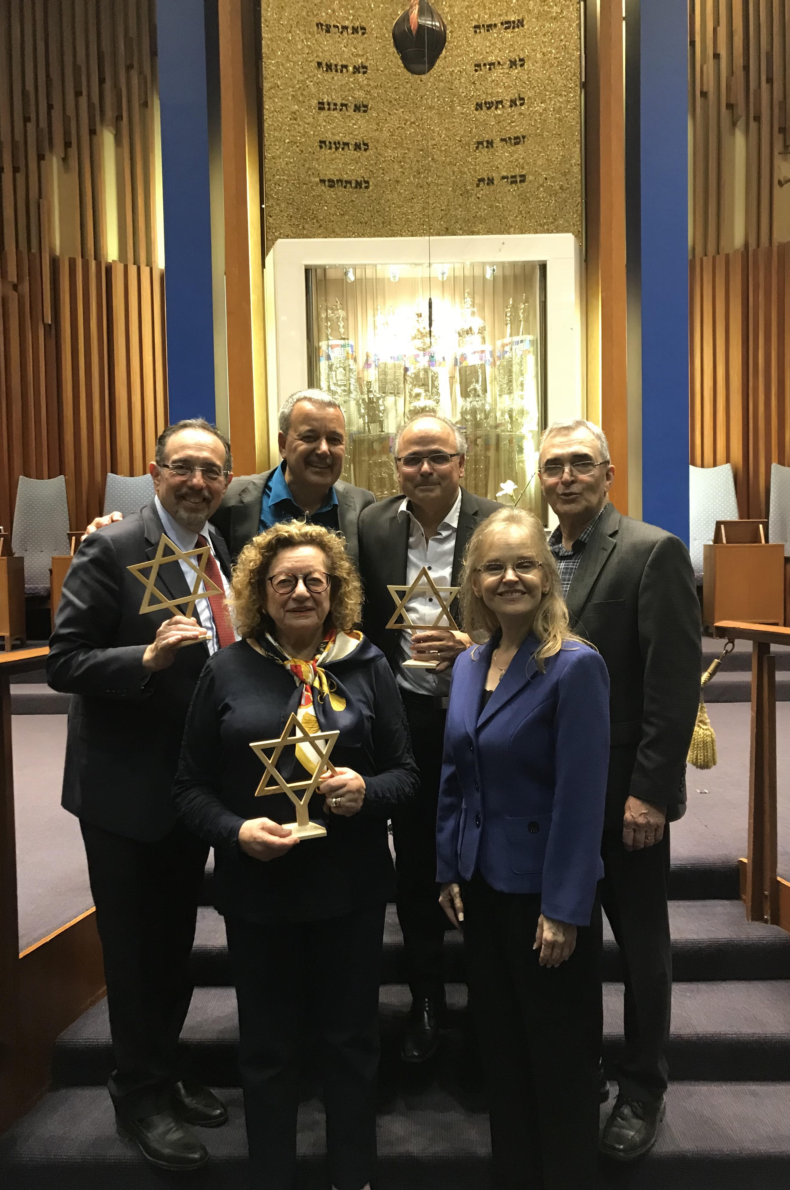 Pictured from left to right: Back row: Rabbi Alan W. Bright, Dean Bye, Cantor Daniel Benlolo, Daniel Bastien. Front Row: Nancy Cooperberg (president SZC) and Danielle Theriault.